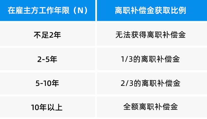 (3)  在合法解除劳动关系的所有情形中,雇主都需支付离职补偿金。但在雇员因个人原因提出辞职的情况下,雇员最终可得离职补偿金与其工作年限直接挂钩。